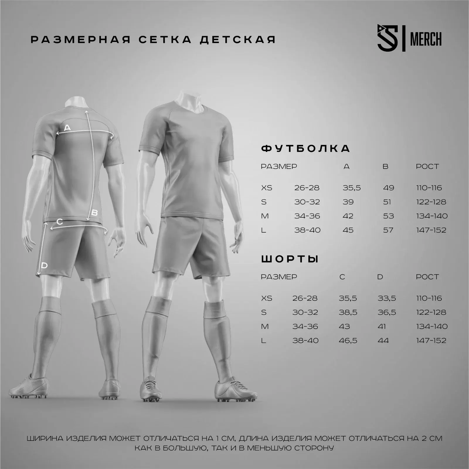 Детский комплект игровой формы. Размеры 26-40. Рост 110-158 см. Взрослый комплект игровой формы. Размеры 42-54. Рост 158-188 см. Форма именная, сшита специально для вас из материала COOLPASS. Быстро сохнет и отлично отводит пот с поверхности тела. Комплект шорты, футболка, гетры. Состав: 100% полиэстр.